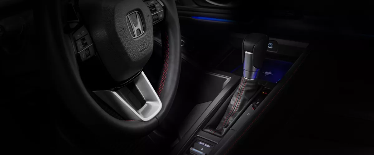 Leather Upholstery Steering Wheel and Shift Knob with Red Stitches |